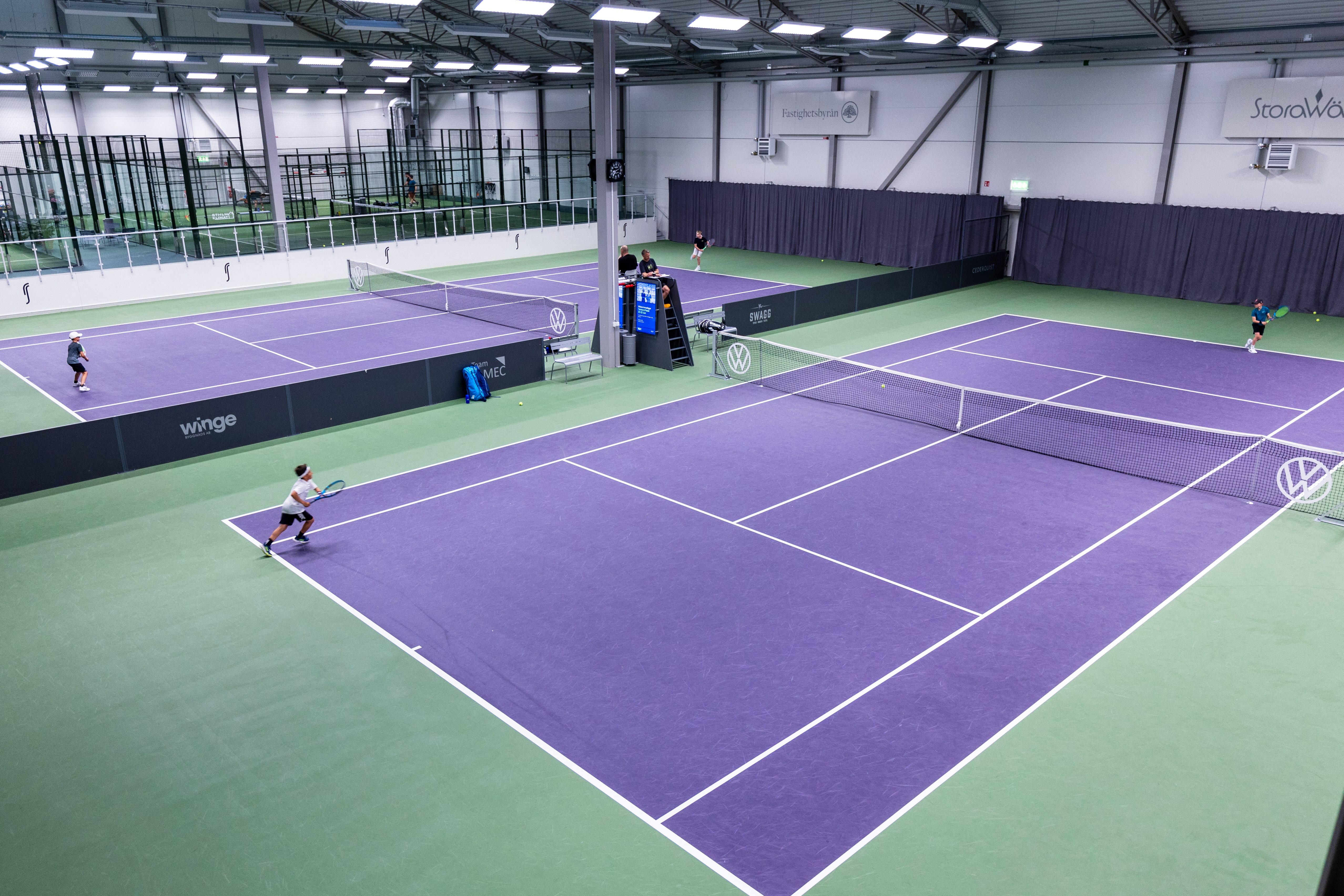 I vår nybyggda anläggning spelar du på fyra moderna hardcourtbanor inomhus, utrustade med systemet Play and Replay. På två av banorna finns även Matchi TV-kameror som gör det möjligt att analysera ditt spel eller dela matcher med andra.